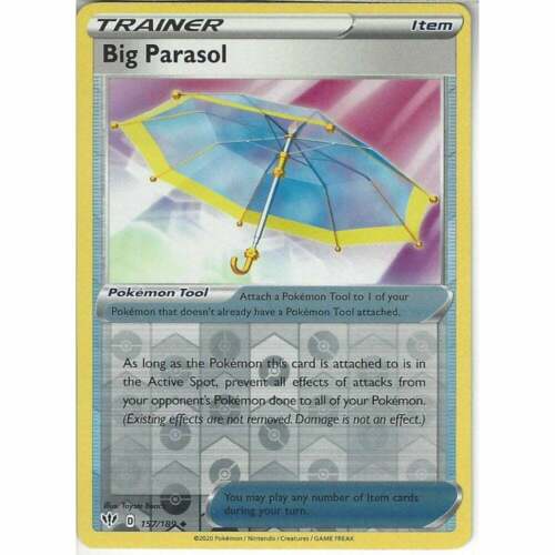 Original price £0.95 - Original price £0.95Original price£0.95£0.95 - £0.95Current price £0.95| /Out of stock1x Near Mint Big Parasol 157/189 Uncommon Reverse Holo Pokemon Card from the SWSH03 Darkness Ablaze expansion of the Pokemon Trading Card Game.
