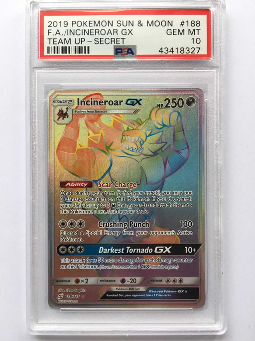 Incineroar GX 188/181 Rainbow Rare PSA 10 Gem M...