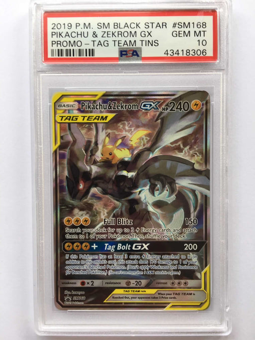 Pikachu & Zekrom GX SM168 Tag Team PSA 10 Gem M...