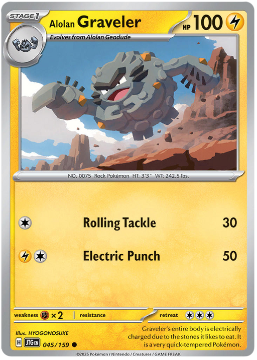 Original price £0.30 - Original price £0.30Original price£0.30£0.30 - £0.30Current price £0.30| /Out of stock1x Near Mint Alolan Graveler 045/159 Common Pokemon Card from the Scarlet & Violet: Journey Together set of the Pokemon Trading Card Game.