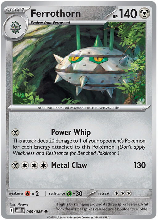 Original price £0.30 - Original price £0.30Original price£0.30£0.30 - £0.30Current price £0.30| /Out of stock1x Near Mint Ferrothorn 069/086 Uncommon Pokemon Card from the Scarlet & Violet White Flare expansion of the Pokemon Trading Card Game.