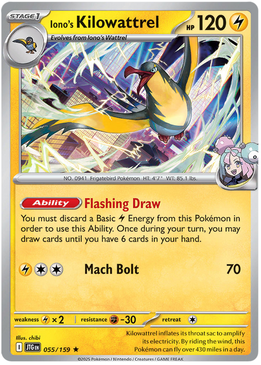 Iono's Kilowattrel 055/159 Rare Pokemon Card (S...