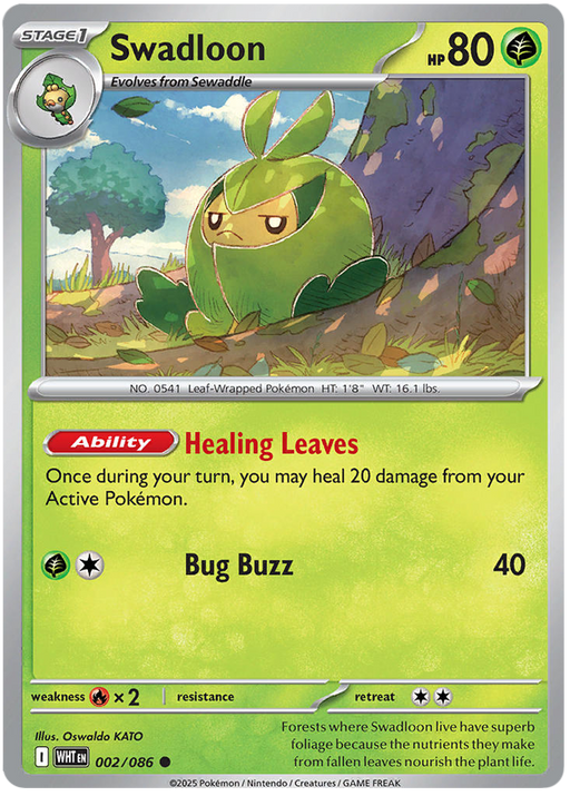 Original price £0.30 - Original price £0.30Original price£0.30£0.30 - £0.30Current price £0.30| /Out of stock1x Near Mint Swadloon 002/086 Common Pokemon Card from the Scarlet & Violet White Flare expansion of the Pokemon Trading Card Game.