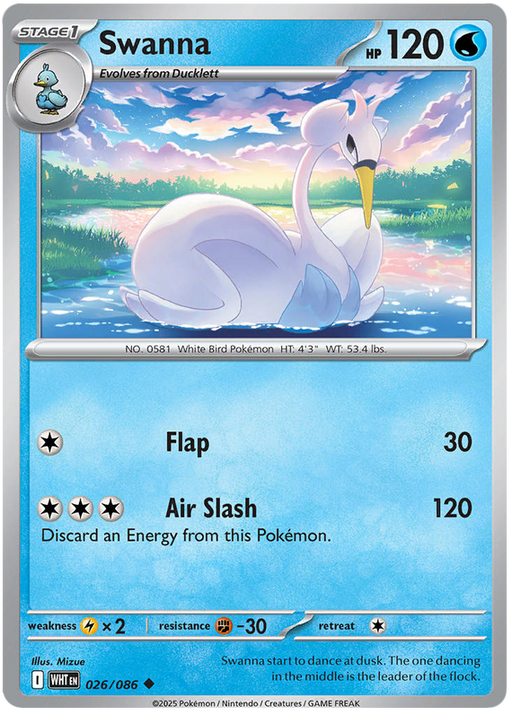 Original price £0.30 - Original price £0.30Original price£0.30£0.30 - £0.30Current price £0.30| /Out of stock1x Near Mint Swanna 026/086 Uncommon Pokemon Card from the Scarlet & Violet White Flare expansion of the Pokemon Trading Card Game.