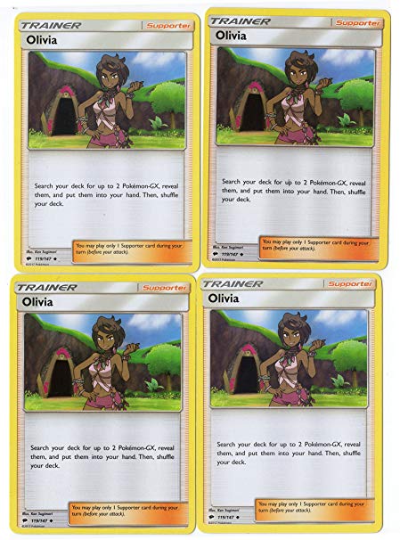 Original price £1.99 - Original price £1.99Original price£1.99£1.99 - £1.99Current price £1.99| /Out of stockThis Purchase is for a 4 Cards Playset of the Olivia 119/147 Pokemon Card from the Burning Shadows set of the Pokemon Trading Card game (4 cards th...