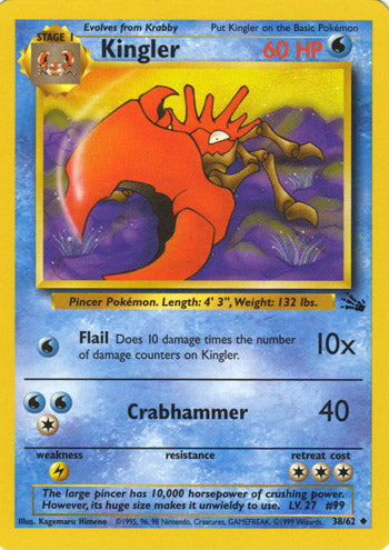 Kingler 38/62 Exc. Cond. Uncommon Pokemon Card ...