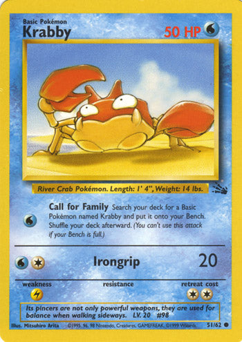 Krabby 51/62 Common Exc Cond. Pokemon Card (Fos...