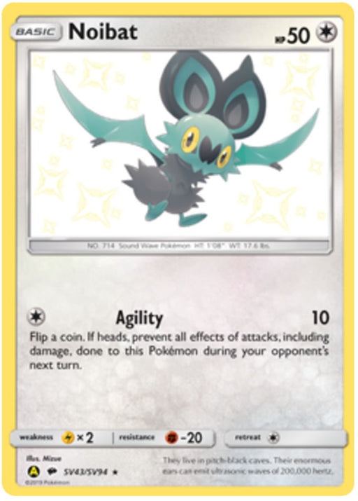 Original price £2.95 - Original price £2.95Original price£2.95£2.95 - £2.95Current price £2.95| /Out of stock1x Near Mint Noibat SV43/SV94 Shiny Rare Pokemon Card from the Sun & Moon Hidden Fates set of the Pokemon TCG. The card will be sent well prote...