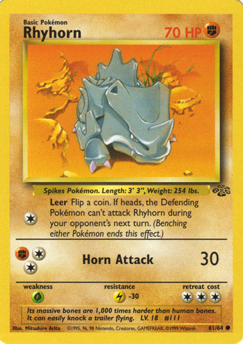Rhyhorn 61/64 Common 1st Edition Pokemon Card (...
