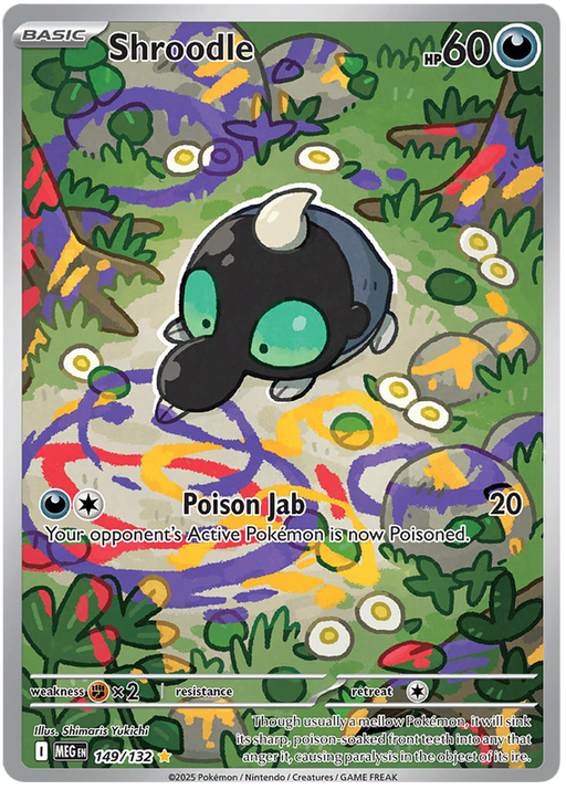 Original price £10.95 - Original price £10.95Original price£10.95£10.95 - £10.95Current price £10.95| /Out of stock1x Near Mint Shroodle 149/132 Illustration Rare Pokemon card from the Mega Evolution Base Set of the Pokemon Trading Card Game.