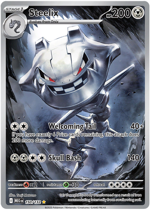 Original price £27.95 - Original price £27.95Original price£27.95£27.95 - £27.95Current price £27.95| /Out of stock1x Near Mint Steelix 150/132 Illustration Rare Pokemon card from the Mega Evolution Base Set of the Pokemon Trading Card Game.