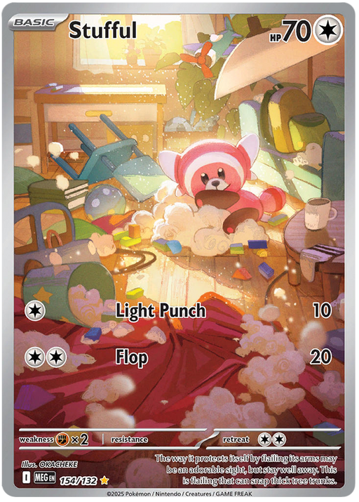 Original price £12.95 - Original price £12.95Original price£12.95£12.95 - £12.95Current price £12.95| /Out of stock1x Near Mint Stufful 154/132 Illustration Rare Pokemon card from the Mega Evolution Base Set of the Pokemon Trading Card Game.