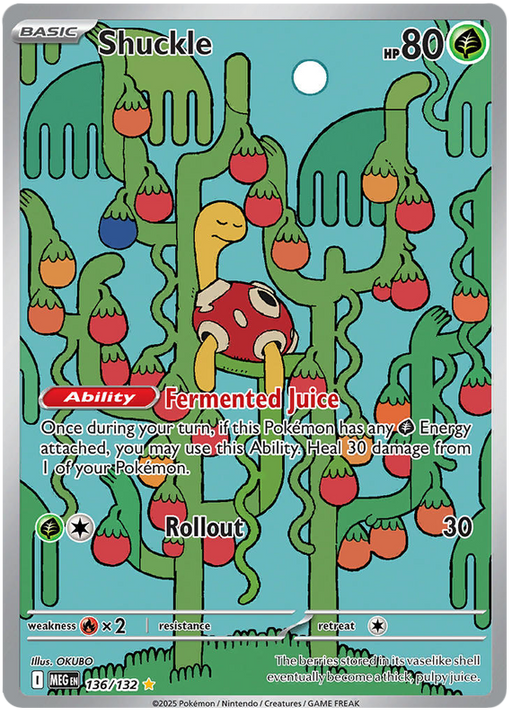 Original price £18.95 - Original price £18.95Original price£18.95£18.95 - £18.95Current price £18.95| /Out of stock1x Near Mint Shuckle 136/132 Illustration Rare Pokemon card from the Mega Evolution Base Set of the Pokemon Trading Card Game.