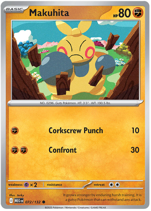 Original price £0.30 - Original price £0.30Original price£0.30£0.30 - £0.30Current price £0.30| /Out of stock1x Near Mint Makuhita 072/132 Common Pokemon card from the Mega Evolution Base Set of the Pokemon Trading Card Game.