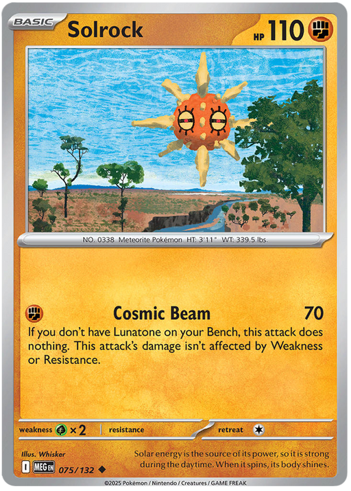 Original price £0.35 - Original price £0.35Original price£0.35£0.35 - £0.35Current price £0.35| /Out of stock1x Near Mint Solrock 075/132 Uncommon Pokemon card from the Mega Evolution Base Set of the Pokemon Trading Card Game.