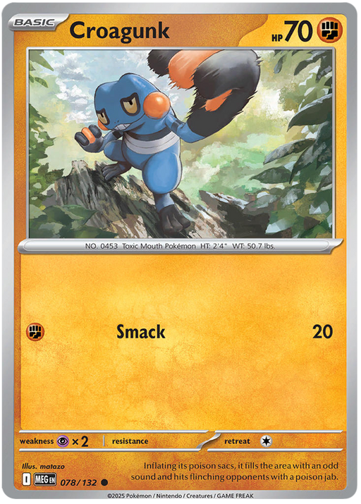 Original price £0.30 - Original price £0.30Original price£0.30£0.30 - £0.30Current price £0.30| /Out of stock1x Near Mint Croagunk 078/132 Common Pokemon card from the Mega Evolution Base Set of the Pokemon Trading Card Game.