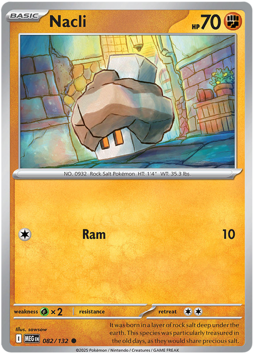 Original price £0.30 - Original price £0.30Original price£0.30£0.30 - £0.30Current price £0.30| /Out of stock1x Near Mint Nacli 082/132 Common Pokemon card from the Mega Evolution Base Set of the Pokemon Trading Card Game.