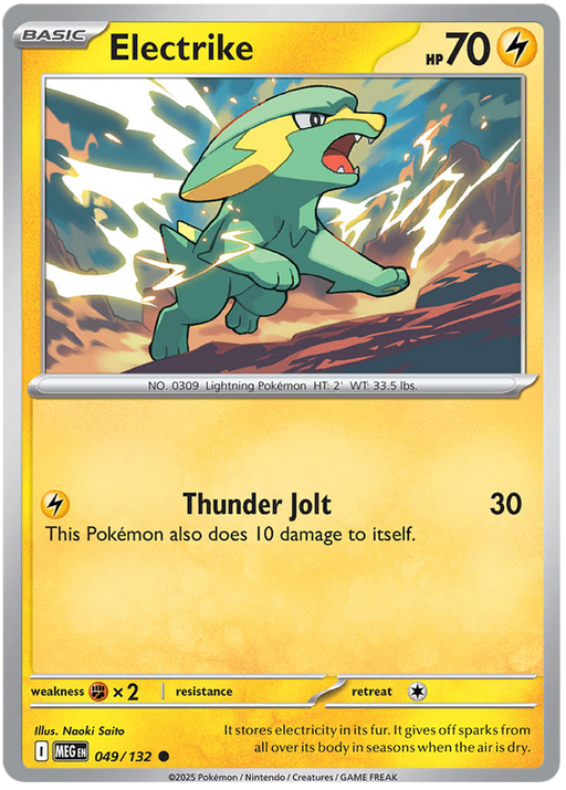 Original price £0.30 - Original price £0.30Original price£0.30£0.30 - £0.30Current price £0.30| /Out of stock1x Near Mint Electrike 049/132 Common Pokemon card from the Mega Evolution Base Set of the Pokemon Trading Card Game.