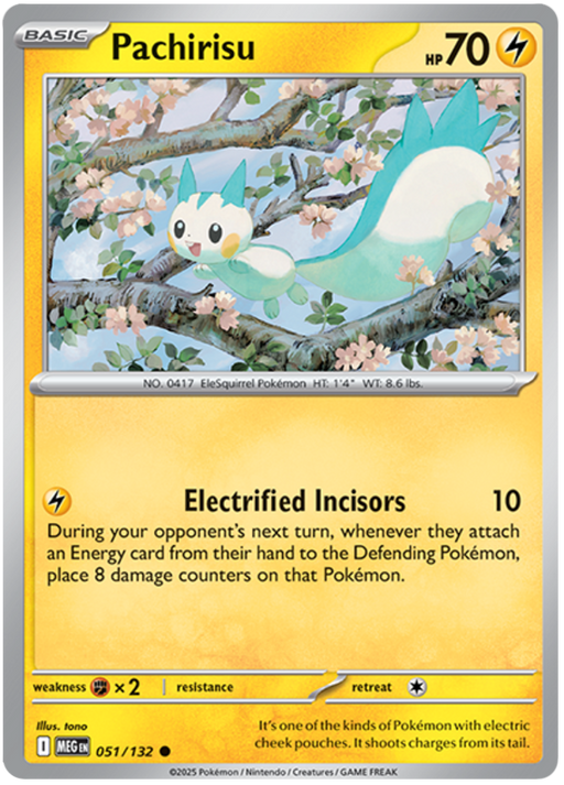 Original price £0.30 - Original price £0.30Original price£0.30£0.30 - £0.30Current price £0.30| /Out of stock1x Near Mint Pachirisu 051/132 Common Pokemon card from the Mega Evolution Base Set of the Pokemon Trading Card Game.