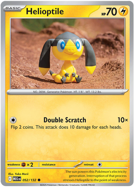 Original price £0.30 - Original price £0.30Original price£0.30£0.30 - £0.30Current price £0.30| /Out of stock1x Near Mint Helioptile 052/132 Common Pokemon card from the Mega Evolution Base Set of the Pokemon Trading Card Game.