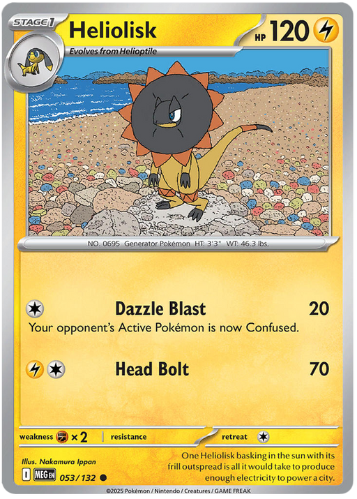 Original price £0.30 - Original price £0.30Original price£0.30£0.30 - £0.30Current price £0.30| /Out of stock1x Near Mint Heliolisk 053/132 Common Pokemon card from the Mega Evolution Base Set of the Pokemon Trading Card Game.