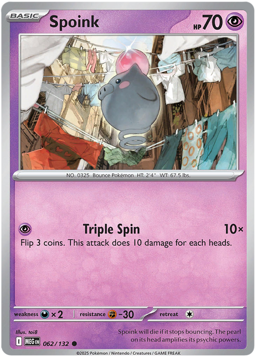 Original price £0.30 - Original price £0.30Original price£0.30£0.30 - £0.30Current price £0.30| /Out of stock1x Near Mint Spoink 062/132 Common Pokemon card from the Mega Evolution Base Set of the Pokemon Trading Card Game.