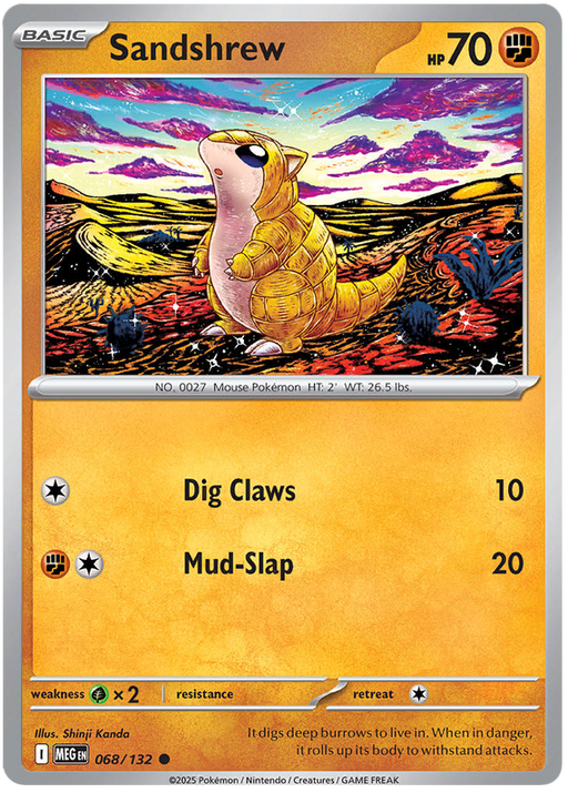 Original price £0.30 - Original price £0.30Original price£0.30£0.30 - £0.30Current price £0.30| /Out of stock1x Near Mint Sandshrew 068/132 Common Pokemon card from the Mega Evolution Base Set of the Pokemon Trading Card Game.
