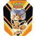 V Power Tin - Eevee V comes with 4 Pokemon set booster packs, a Eevee V Promo, and a code card to redeem a 60 card online deck for the Pokemon TCG online game. The online theme deck is focused around Eevee V.