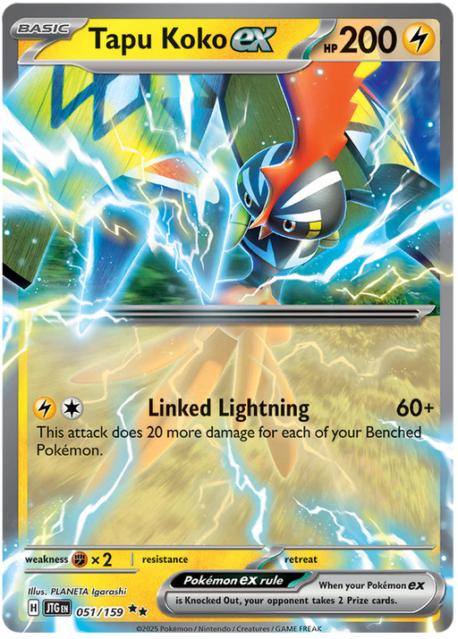 Original price £3.95 - Original price £3.95Original price£3.95£3.95 - £3.95Current price £3.95| /In stock1x Near Mint Tapu Koko ex 051/159 Double Rare Pokemon Card from the Scarlet & Violet: Journey Together set of the Pokemon Trading Card Game.