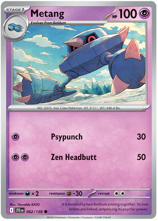 Original price £0.30 - Original price £0.30Original price£0.30£0.30 - £0.30Current price £0.30| /Out of stock1x Near Mint Metang 062/159 Common Pokemon Card from the Scarlet & Violet: Journey Together set of the Pokemon Trading Card Game.