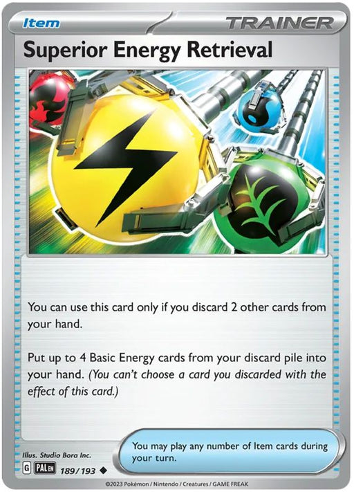 Original price £0.30 - Original price £0.30Original price£0.30£0.30 - £0.30Current price £0.30| /Out of stock1x Near Mint Superior Energy Retrieval 189/193 Uncommon Reverse Holo Pokemon Card from the Scarlet & Violet Paldea Evolved expansion of the Po...