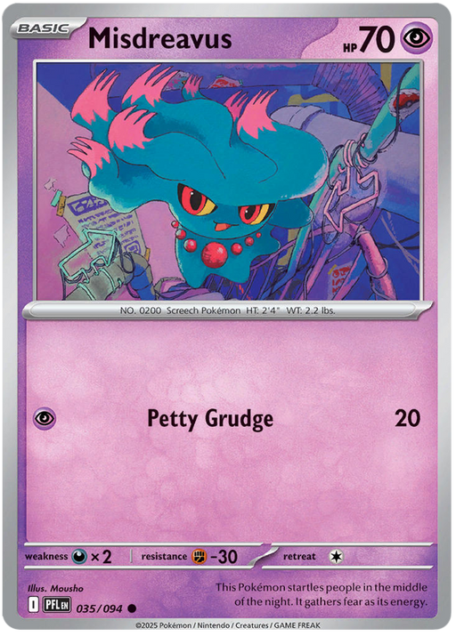 Original price £0.20 - Original price £0.20Original price£0.20£0.20 - £0.20Current price £0.20| /Out of stock1x Near Mint Misdreavus 035/094 Common Pokemon Card from the Mega Evolution: Phantasmal Flames expansion of the Pokemon Trading Card Game.