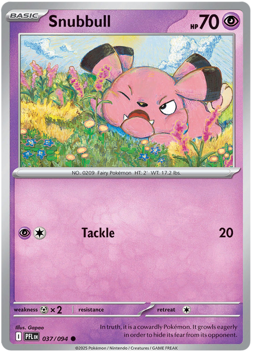 Original price £0.20 - Original price £0.20Original price£0.20£0.20 - £0.20Current price £0.20| /Out of stock1x Near Mint Snubbull 037/094 Common Pokemon Card from the Mega Evolution: Phantasmal Flames expansion of the Pokemon Trading Card Game.