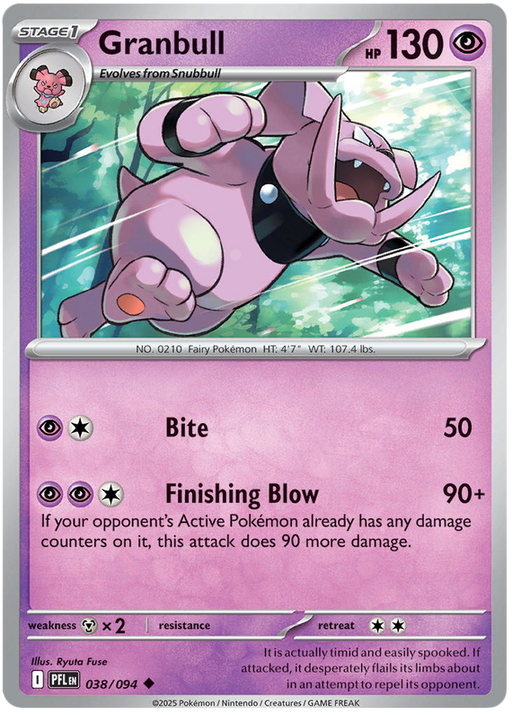 Original price £0.25 - Original price £0.25Original price£0.25£0.25 - £0.25Current price £0.25| /Out of stock1x Near Mint Granbull 038/094 Uncommon Pokemon Card from the Mega Evolution: Phantasmal Flames expansion of the Pokemon Trading Card Game.