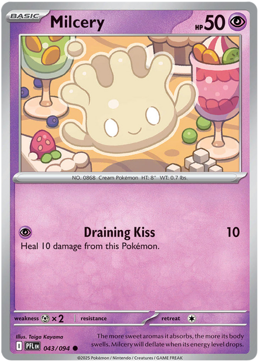 Original price £0.20 - Original price £0.20Original price£0.20£0.20 - £0.20Current price £0.20| /Out of stock1x Near Mint Milcery 043/094 Common Pokemon Card from the Mega Evolution: Phantasmal Flames expansion of the Pokemon Trading Card Game.