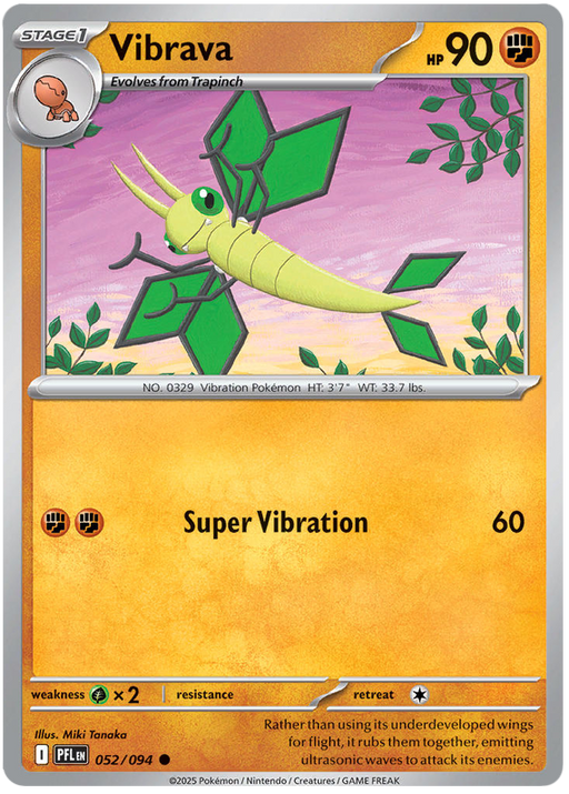 Original price £0.20 - Original price £0.20Original price£0.20£0.20 - £0.20Current price £0.20| /Out of stock1x Near Mint Vibrava 052/094 Common Pokemon Card from the Mega Evolution: Phantasmal Flames expansion of the Pokemon Trading Card Game.