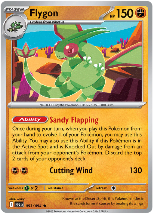 Original price £1.99 - Original price £1.99Original price£1.99£1.99 - £1.99Current price £1.99| /Out of stock1x Near Mint Flygon 053/094 Rare Pokemon Card from the Mega Evolution: Phantasmal Flames expansion of the Pokemon Trading Card Game.