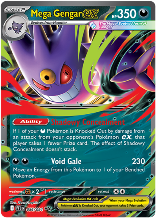 Original price £6.55 - Original price £6.55Original price£6.55£6.55 - £6.55Current price £6.55| /Out of stock1x Near Mint Mega Gengar ex 056/094 Double Rare Pokemon Card from the Mega Evolution: Phantasmal Flames expansion of the Pokemon Trading Card Game.
