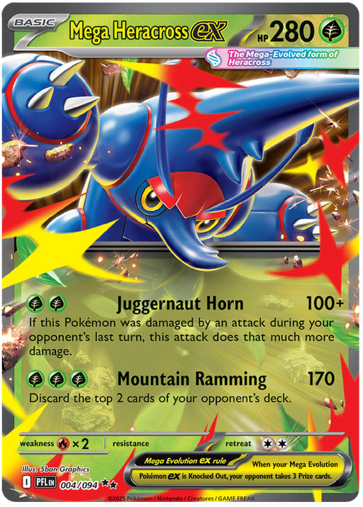 Original price £2.85 - Original price £2.85Original price£2.85£2.85 - £2.85Current price £2.85| /Out of stock1x Near Mint Mega Heracross ex 004/094 Double Rare Pokemon Card from the Mega Evolution: Phantasmal Flames expansion of the Pokemon Trading Card Game.