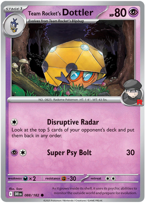 Original price £1.95 - Original price £1.95Original price£1.95£1.95 - £1.95Current price £1.95| /Out of stock1x Near Mint Team Rocket's Dottler 088/182 Common Pokemon Card from the Scarlet & Violet: Destined Rivals expansion of the Pokemon Trading Card...