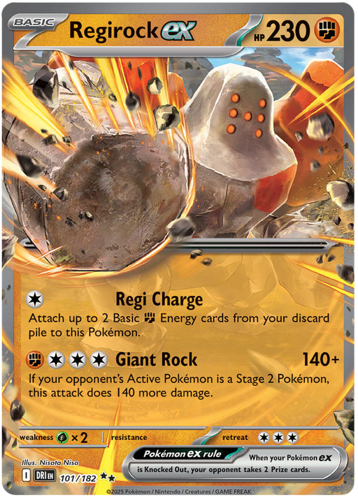 Original price £3.95 - Original price £3.95Original price£3.95£3.95 - £3.95Current price £3.95| /Out of stock1x Near Mint Regirock ex 101/182 Double Rare Pokemon Card from the Scarlet & Violet: Destined Rivals expansion of the Pokemon Trading Card Game.