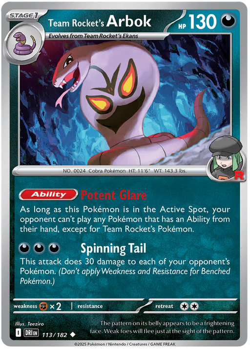 Team Rocket's Arbok 113/182 Uncommon Pokemon Ca...
