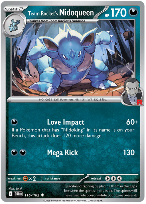 Original price £1.95 - Original price £1.95Original price£1.95£1.95 - £1.95Current price £1.95| /Out of stock1x Near Mint Team Rocket's Nidoqueen 116/182 Uncommon Pokemon Card from the Scarlet & Violet: Destined Rivals expansion of the Pokemon Trading ...