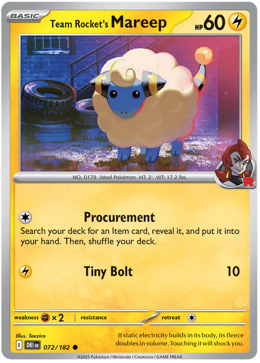 Team Rocket's Mareep 072/182 Common Pokemon Car...