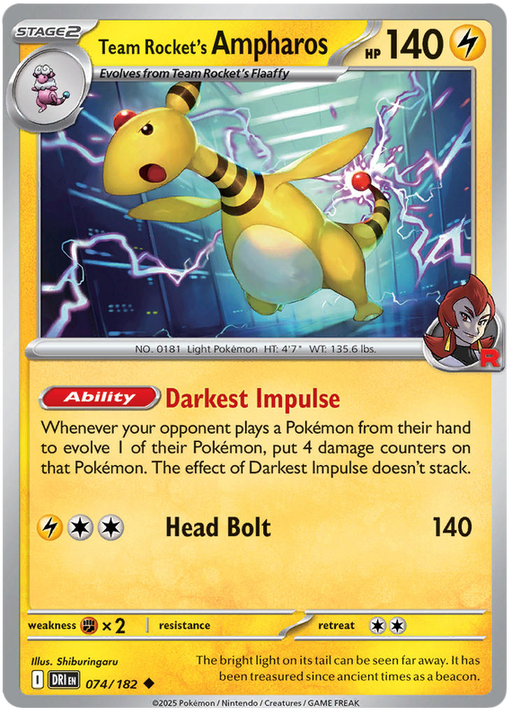 Original price £1.95 - Original price £1.95Original price£1.95£1.95 - £1.95Current price £1.95| /Out of stock1x Near Mint Team Rocket's Ampharos 074/182 Uncommon Pokemon Card from the Scarlet & Violet: Destined Rivals expansion of the Pokemon Trading C...
