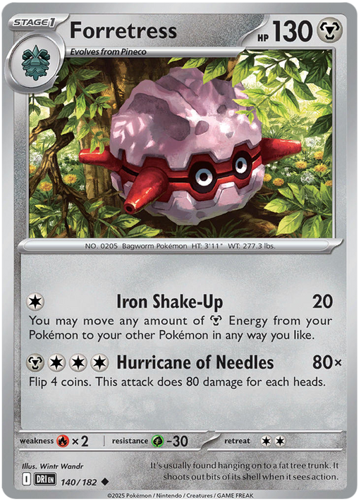 Original price £0.30 - Original price £0.30Original price£0.30£0.30 - £0.30Current price £0.30| /Out of stock1x Near Mint Forretress 140/182 Uncommon Pokemon Card from the Scarlet & Violet: Destined Rivals expansion of the Pokemon Trading Card Game.
