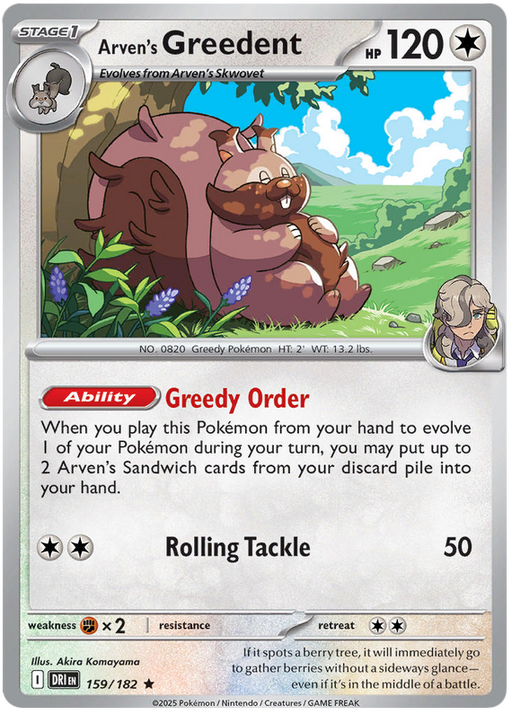 Arven's Greedent 159/182 Rare Pokemon Card (Sca...