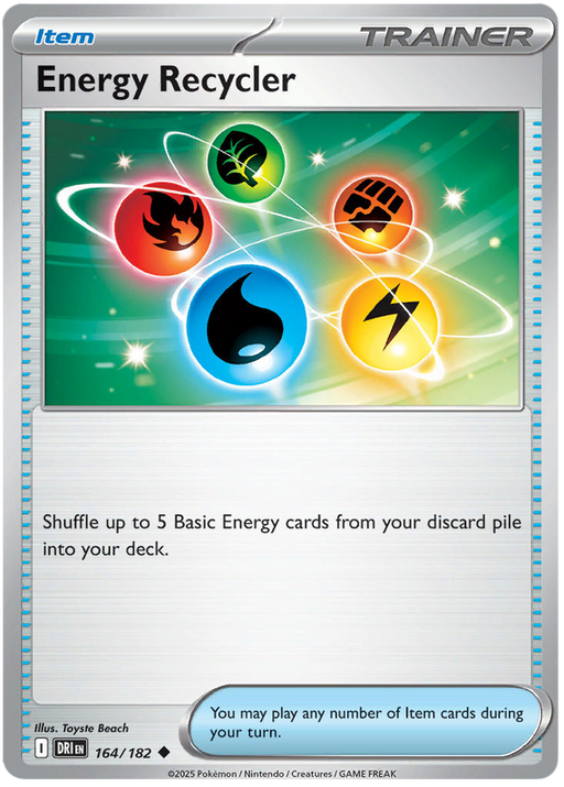 Original price £0.30 - Original price £0.30Original price£0.30£0.30 - £0.30Current price £0.30| /Out of stock1x Near Mint Energy Recycler 164/182 Uncommon Pokemon Card from the Scarlet & Violet: Destined Rivals expansion of the Pokemon Trading Card Game.