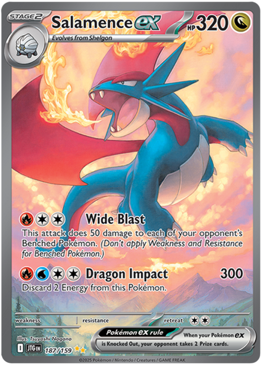 Original price £6.95 - Original price £6.95Original price£6.95£6.95 - £6.95Current price £6.95| /In stock1x Near Mint Salamence ex 177/159 Ultra Rare Pokemon Card from the Scarlet & Violet: Journey Together set of the Pokemon Trading Card Game.