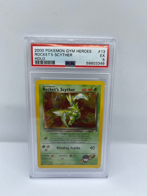 Original price £69.99 - Original price £69.99Original price£69.99£69.99 - £69.99Current price £69.99| /Low stockRocket's Scyther 13/132 PSA 5 Graded Rare Pokemon Card (2000 Pokemon Gym Heroes) Like all authentic graded PSA cards the card can be verified by th...